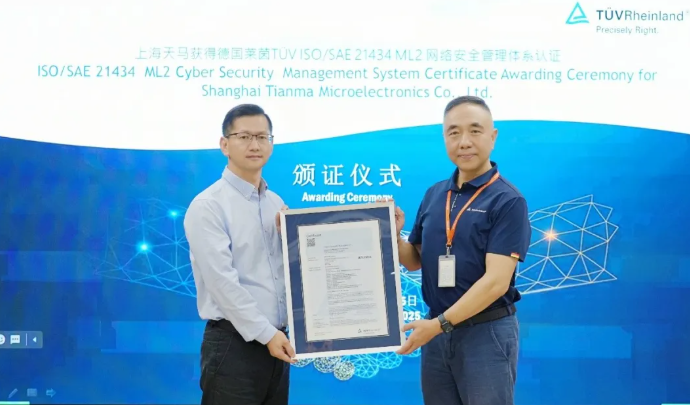 近日,國際知名獨立第三方檢測、檢驗和認證機構德國萊茵TüV集團(以下簡稱“TüV萊茵”)向天馬微電子股份有限公司(以下簡稱“天馬”)頒發了ISO/SAE 21434網絡安全管理體系認證證書。這標志著天馬